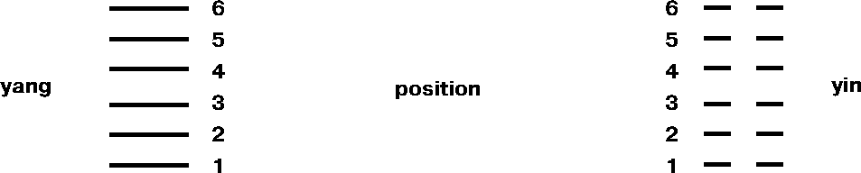 Let us consider the structure and possible applications of hexagrams. Each hexagram has six positions (lines) differing in their locations. Each position can be either in Yang or Yin location, it is shown by whole or interrupted line.