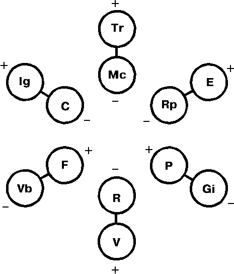 An ordinary tactics of treatment consists in improving disbalance between organs having the clearest distinction or it consists in distinguishing an organ being the main disbalance link and in influencing organs connected. with it to improve this disbalance. The hexagram structure itself already means disbalance between organs. From this point of view disbalance between organs is quite a normal phenomenon. Thus, there are both favourable and unfavourable hexagrams, and there are favourable, and unfavourable disbalances of organs for the season given.