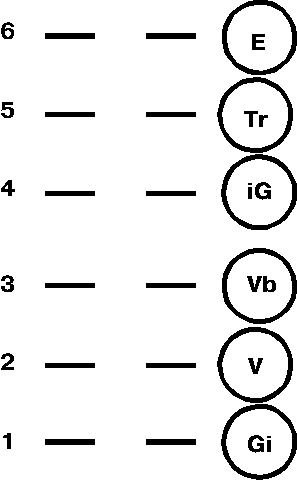 In this case every such diagram corresponds to a definite hexagram. There are twelve such diagrams all in all, hence, twelve hexagrams are necessary to describe them. For example: