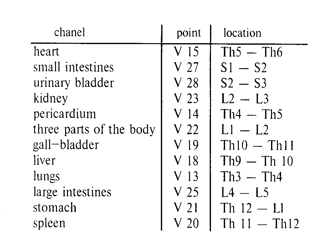 We have to mention the vertebral column and paravertebral points so called the meridians of urinary bladder (B). It’s the longest meridian, according to the U-SIN (fig. 3),